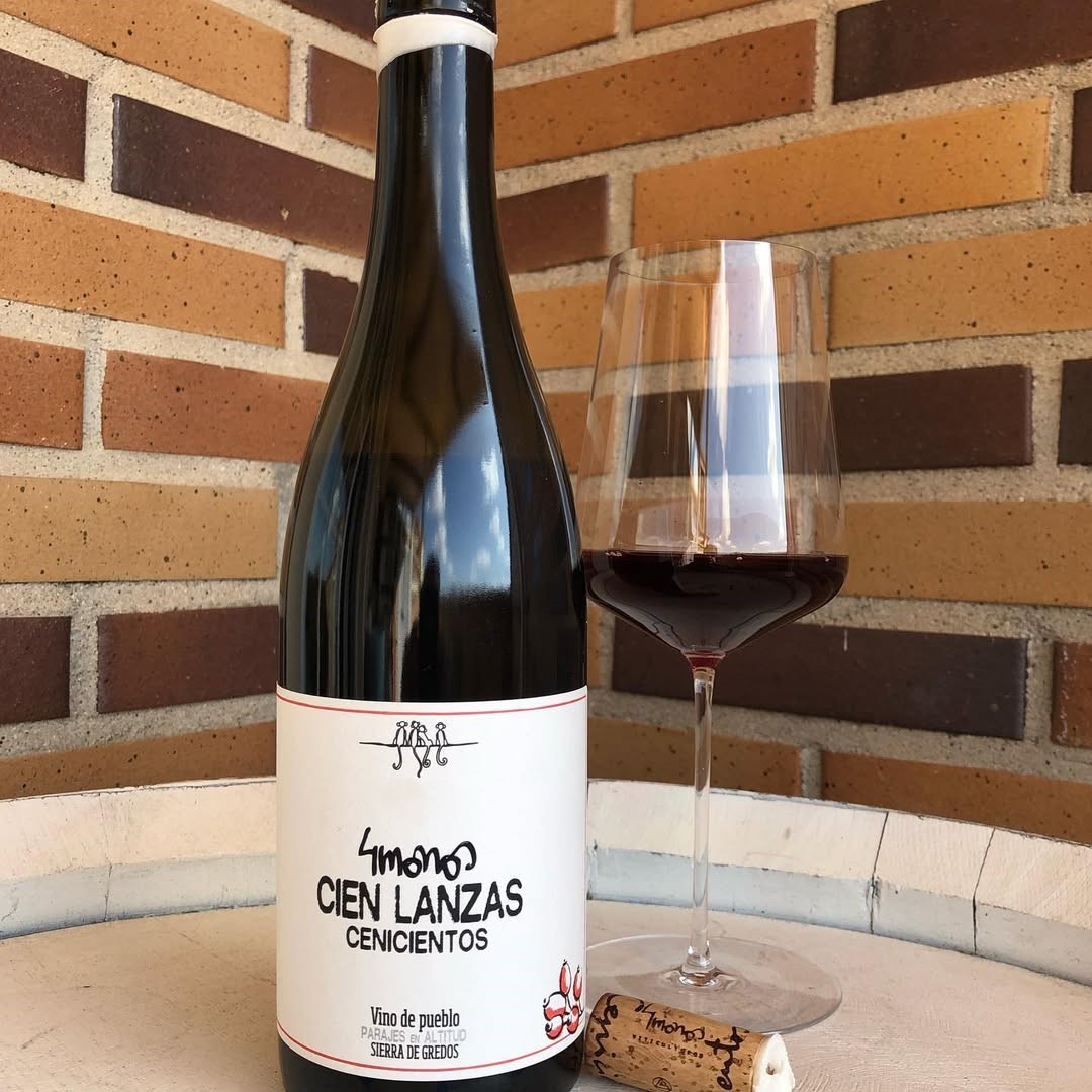 Cien Lanzas Cenicientos 2020 is a high-altitude red wine made by 4 Monos, a group of friends passionate about the Sierra de Gredos. This is a Crianza red wine, notable for its floral aromas and more austere palate. The wine is made with Garnacha, Cariñena, and Garnacha Blanca grapes from high-altitude vineyards in the village of Cenicientos, fermented with whole bunches and native yeasts, and matured in used oak barrels for 12 months.